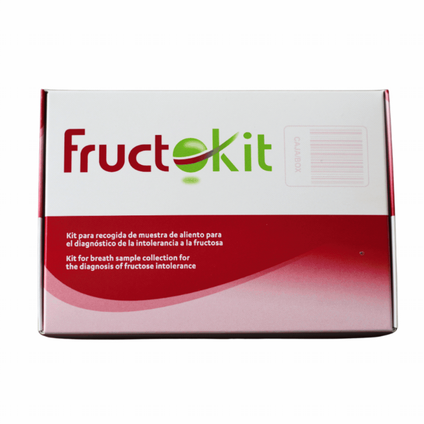 FRUCTO-KIT es un kit de recogida de muestras de aliento indicado en adultos y niños mayores de 5 años con síntomas digestivos asociados a la ingesta de productos que contengan fructosa y/o sorbitol de forma natural, como frutas, verduras, o miel y frutas secas, o productos procesados y bebidas en los que se añaden como edulcorantes. Los síntomas más frecuentes son diarrea, flatulencias, meteorismo, distensión y/o dolor abdominal, etc.